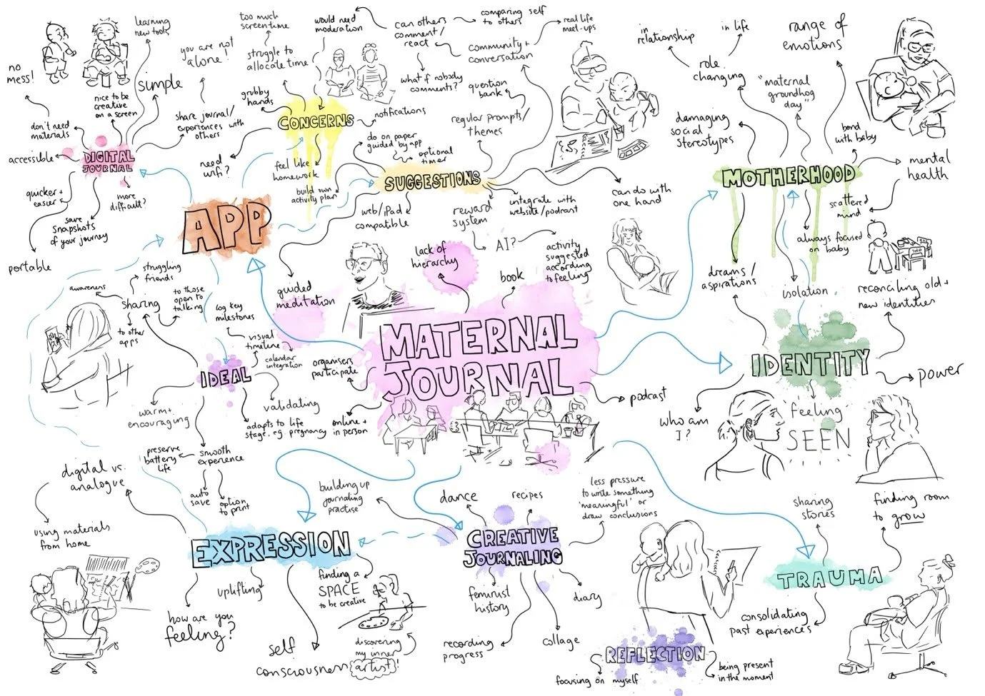 Approach: Maternal Journal guides and resources are free to access on the website; the Maternal Journal book provides offline support for individual or group practice; and there are physical journaling groups and meet-ups. An app would act as a dynamic, pocket-sized handbook for easy journaling at home or on the go.